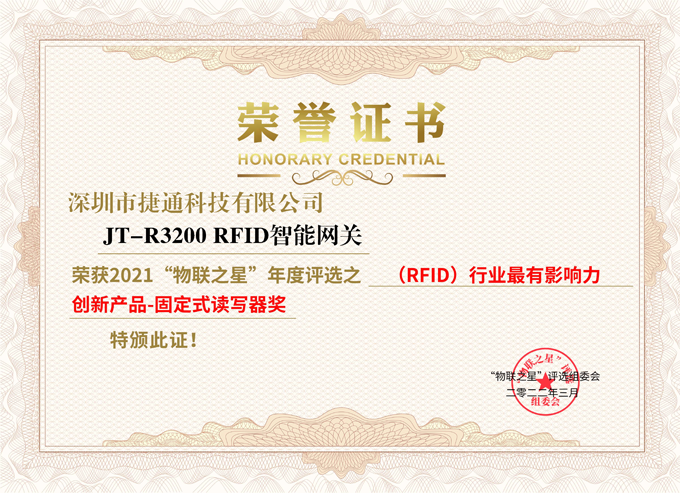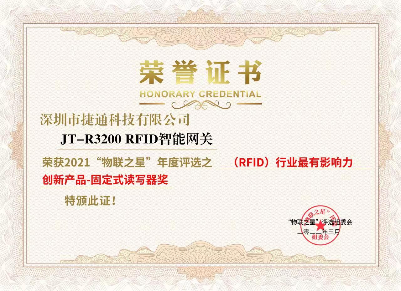 • 2021“物聯(lián)之星”RFID行業(yè)最有影響力創(chuàng)新產(chǎn)品-固定式讀寫器獎