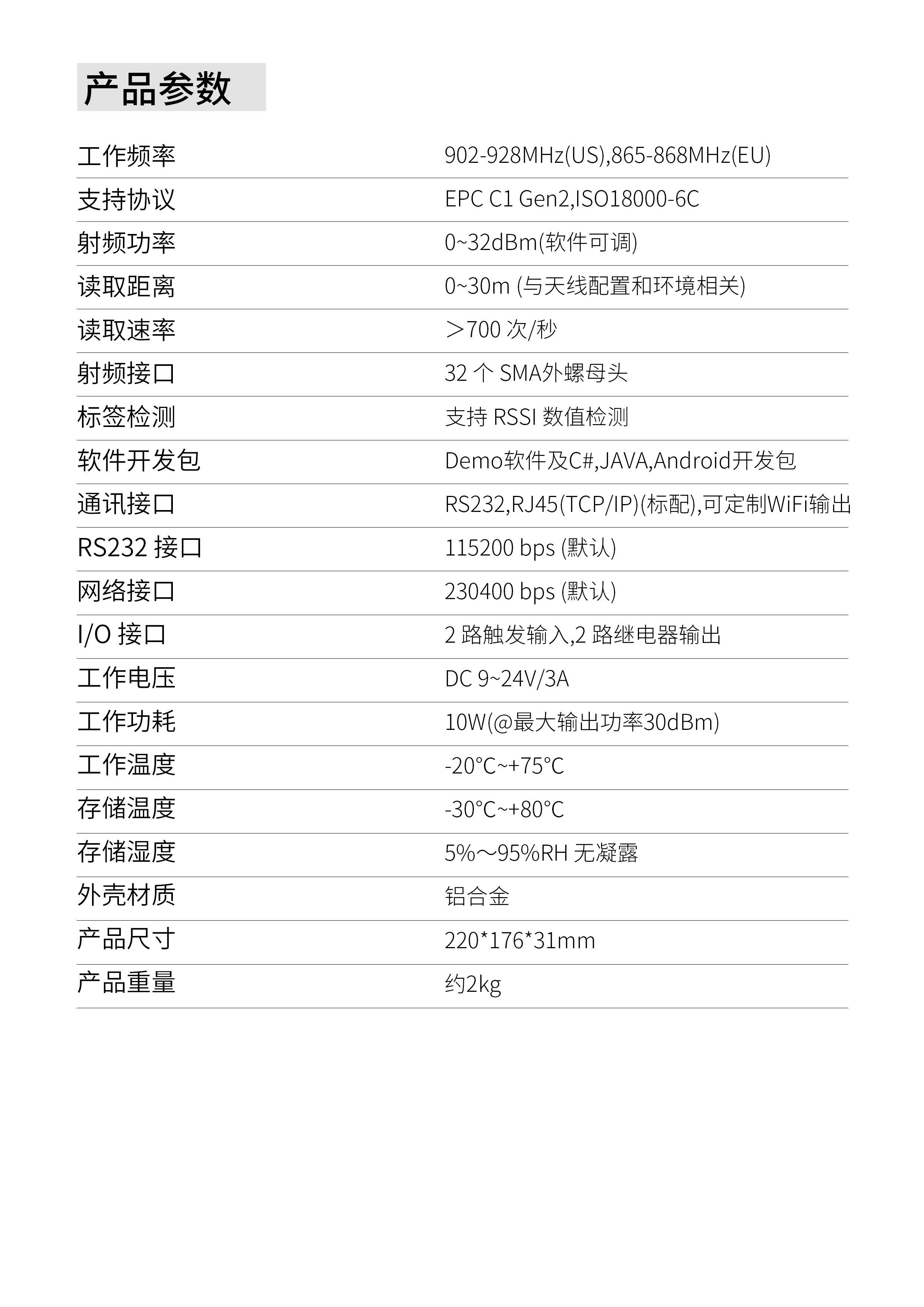 支持外接32個(gè)SMA天線,卓越的多標(biāo)簽識(shí)別能力 |